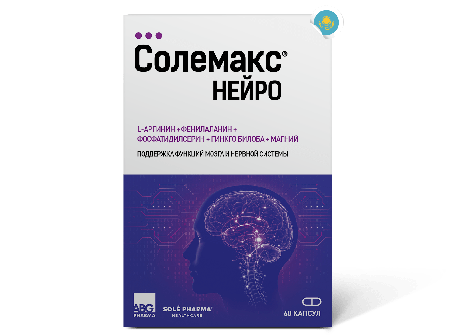 Solemax® Neuro is for memory, concentration and brain performance. The product involves various effective components that are all necessary for the cognitive function improvement. It positively affects brain functions by improving reaction times, also nerve cells impulse transmission and reduces irritability, improves memory and blood circulation, and increases oxygen delivery.