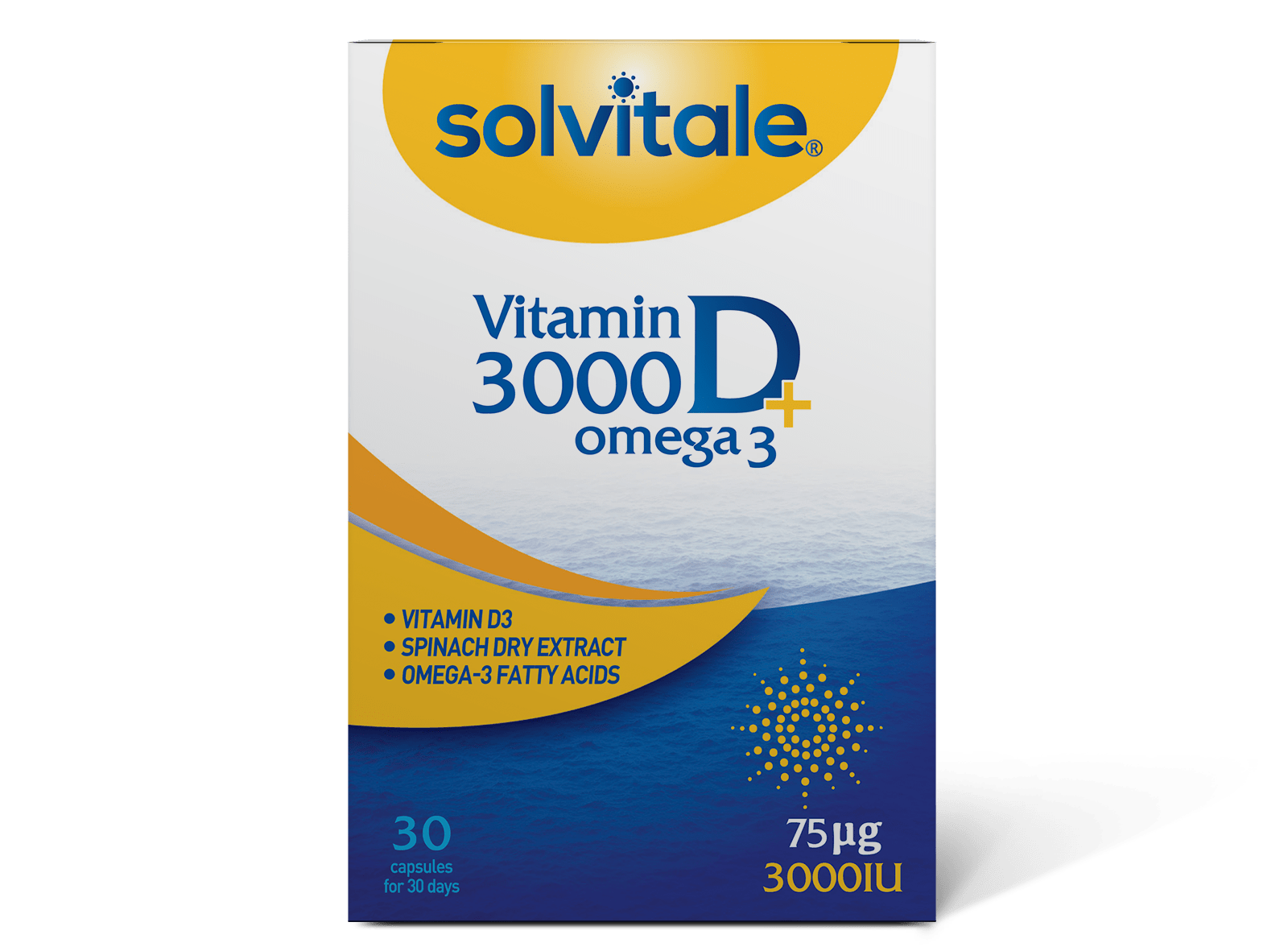 Solvitale® D + Omega-3 contains vitamin D3 and K2. Vitamin D3 contributes to the normal functioning of the immune system, contributes to the normal health of teeth and muscles, promotes normal absorption of calcium and phosphorus, helps maintain normal blood calcium levels. Vitamin K2 promotes normal blood clotting function and helps to maintain a strong heart and bones.