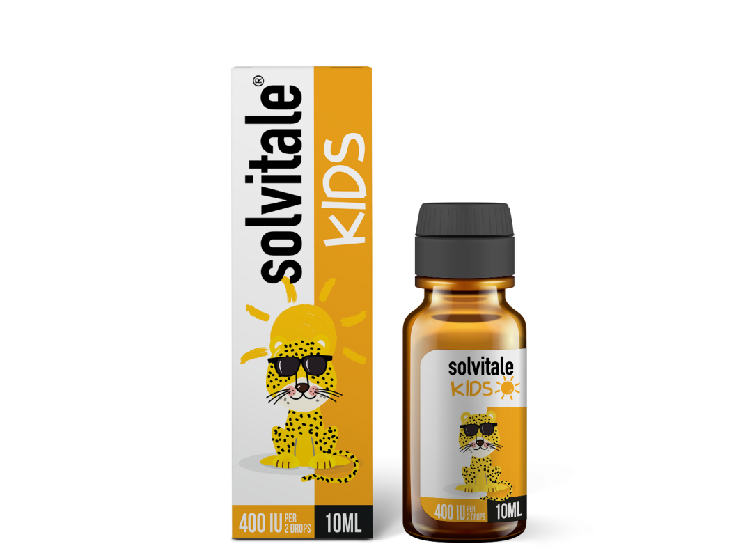 Solvitale® D3 contains fat-soluble vitamin D3, that helps to maintain normal growth and development of bones for children, contributes to the normal health of teeth and muscles, promotes normal absorption of calcium and phosphorus, helps to maintain normal blood calcium levels and contributes to the normal functioning of the immune system.
