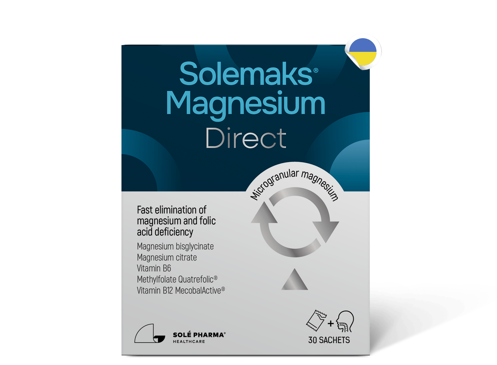 Solvitale® Magnefol Direct+ is the first stick-pack formulation combining magnesium bisglycinate and magnesium citrate with a fresh orange taste. Each direct granule pack delivers 300 mg of elemental magnesium, designed for quick absorption with on the go formula. These granules can be taken without water, making them ideal for those with an active lifestyle, increased magnesium needs, sudden leg cramps, or short-term stress relief.