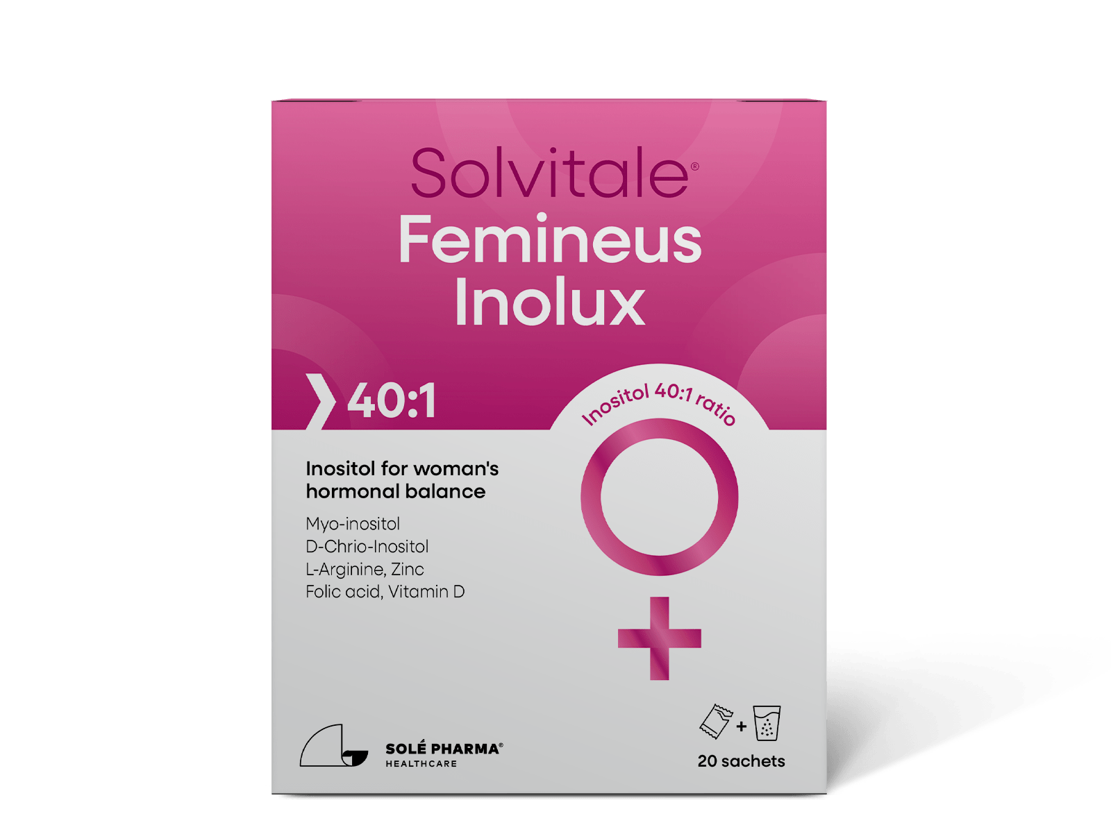 Solvitale® Femineus — продукт премиум-класса для повышения фертильности и репродукции женщин, планирующих зачатие. Мио-инозитол оказывает благотворное воздействие, главным образом, на яичники, где он больше всего сконцентрирован. Kvinofolic Femineus имеет соотношение мио-инозитола и D-хиро-инозитола 40:1, как наиболее эффективное и научно подтвержденное для восстановления овуляции и улучшения женского репродуктивного здоровья.